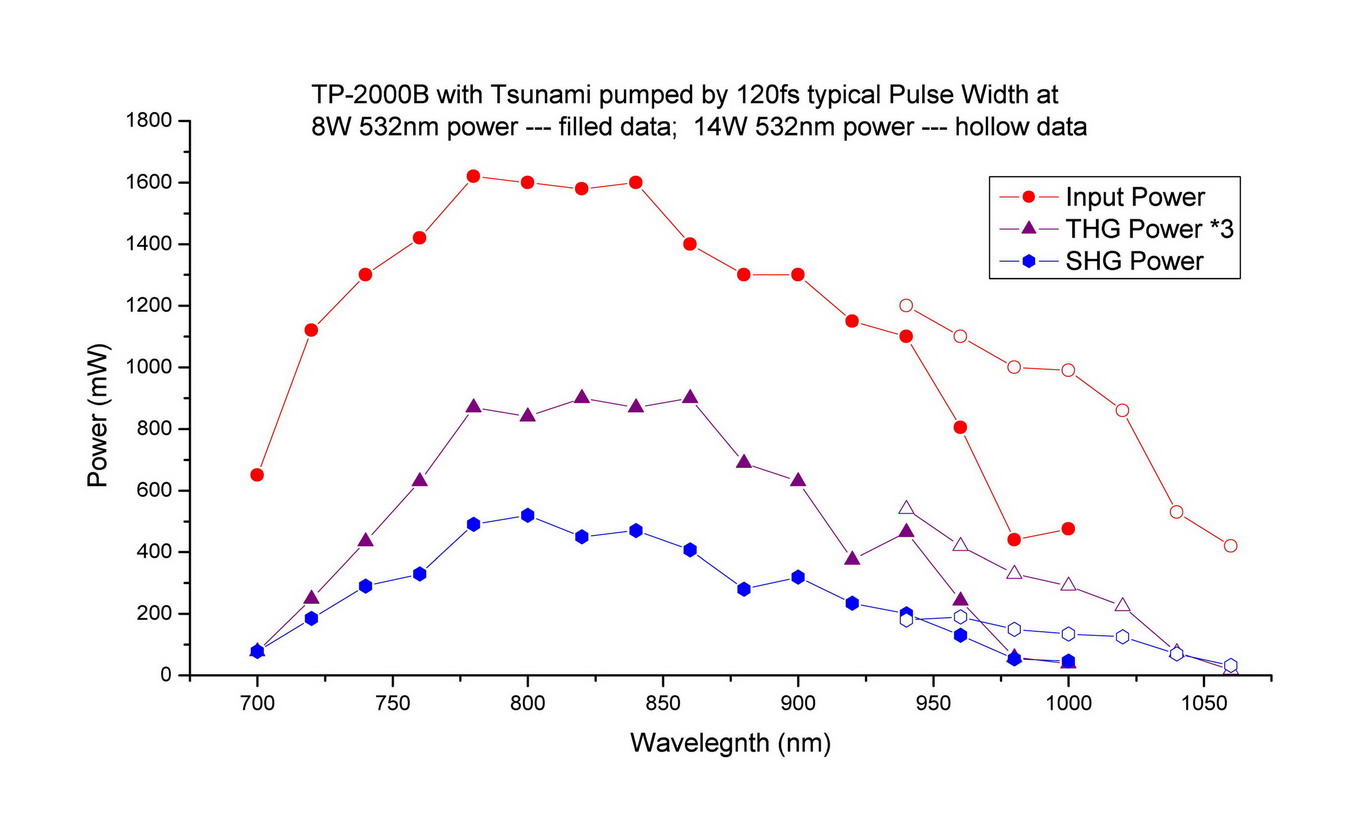 The latest TP-2000B design could triple Ti:Sapphire output from 680 nm ~1,100nm with single set of optics.