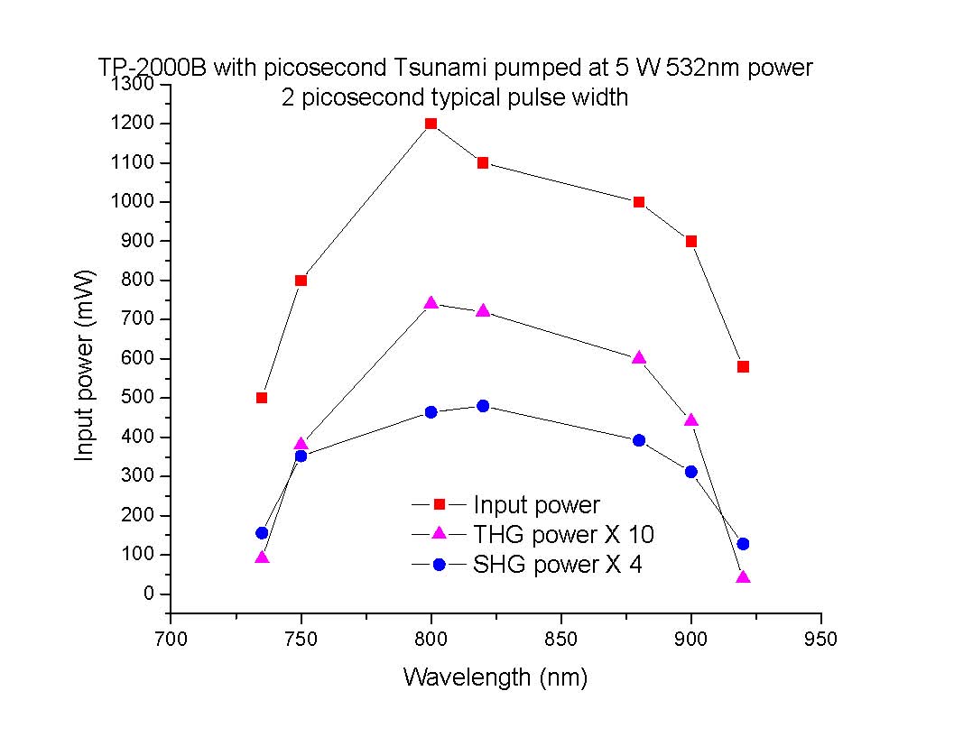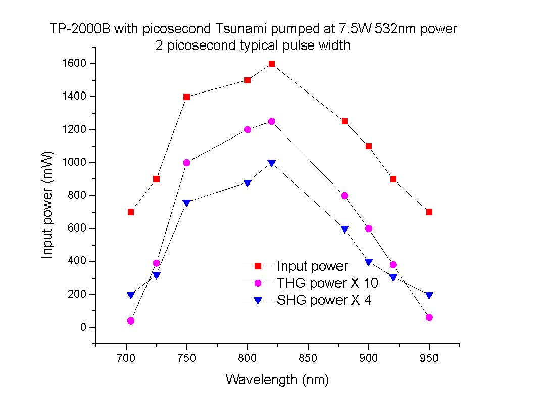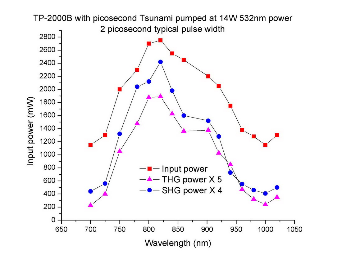 TP-2000B works for Ti:S oscillator. Both fsec and psec operations are available at 700-900 nm and/or 800-1000 nm. Please consult a U-Oplaz sales engineer with questions on configuration or system efficiencies.