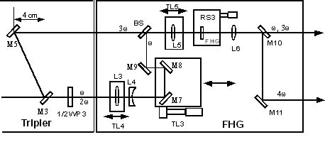 The TP-2000B-tripler produced 80 mW third harmonic beam (10%) and the remaining fundamental beam was 300 mW; then these two beams were delivered to the TP-1B-FHG. We obtained 2.0 mW 4th harmonic beam from the TP-1B-FHG. The efficiency is about 2.5% from 3rd harmonic to 4th harmonic.